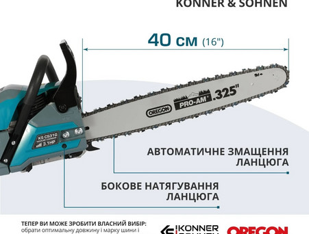 - Вибір шин та ланцюгів: Könner & Söhnen пропонує можливість вибору різних типів шин та ланцюгів для бензопили, що дозволяє оптимізувати її під конкретні задачі. Це дозволяє продовжити термін служби інструменту та знизити витрати на заміну деталей.