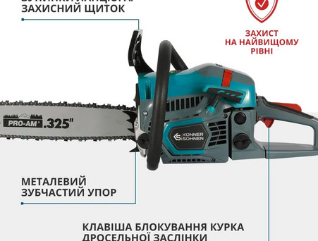 - Надійність і довговічність: Всі деталі бензопили виготовлені з високоякісних матеріалів, що забезпечує довговічність і стійкість до зношування. Könner & Söhnen дбає про якість своїх продуктів, надаючи користувачам надійний інструмент для професійних завдань.
