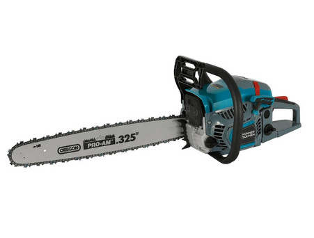 - Простота використання: Бензопила має автоматичну систему змащення ланцюга та зручне натягування збоку, що значно спрощує обслуговування інструменту. Система полегшеного запуску дозволяє легко запускати пилу навіть при низьких температурах.