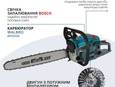 - Мобільність та автономність: Відсутність прив'язки до електромережі робить бензопилу мобільною та автономною. Ви можете працювати в будь-якому місці, що особливо важливо при виконанні завдань на віддалених ділянках або у важкодоступних місцях.