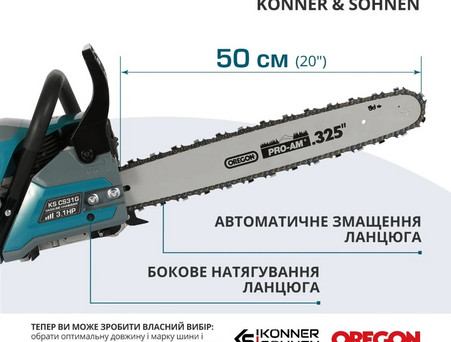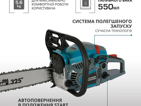 - Гнучкість налаштувань: Könner & Söhnen пропонує широкий вибір шин і ланцюгів, що дозволяє вибрати оптимальні варіанти відповідно до ваших потреб і специфіки роботи. Це забезпечить довший термін служби інструменту та зменшить витрати на обслуговування.