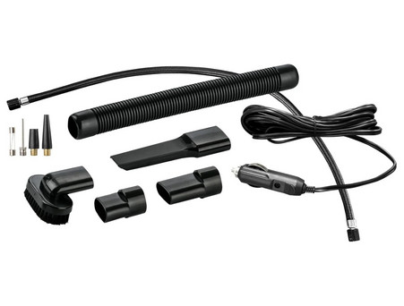 В комплекті є декілька щіток для прибирання. Щілинна насадка - всмоктує крихти та пил у важкодоступних кутах, щілинах й пазах в автомобілі, а також на нерівних поверхнях. Насадка-щітка призначена для ретельного очищення текстильних поверхонь, сидінь, підлокітників, килимків. Гофрований шланг, адаптери, перехідники для повітряного шланга – додаткові помічники в роботі пристрою.