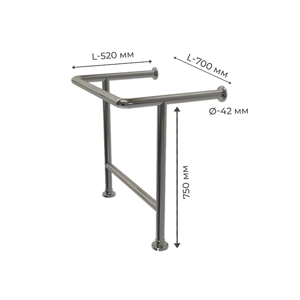 Характеристики - Поручень для людей з інвалідністю (МГН) для раковини підлогово-настінний INVO із захистом зливу, розмір 700х750 мм, D труби - 42 мм