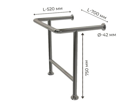 Опис Поручень для людей з інвалідністю (МГН) для раковини підлогово-настінний INVO із захистом зливу, розмір 700х750 мм, D труби - 42 мм