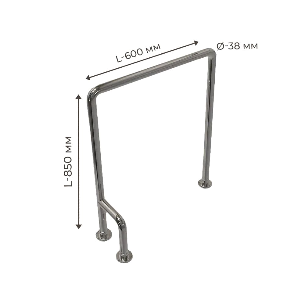 Опис Поручень для людей з інвалідністю (МГН) підлоговий INVO П-подібний правий та лівий, розмір 600х850 мм, D труби - 38 мм