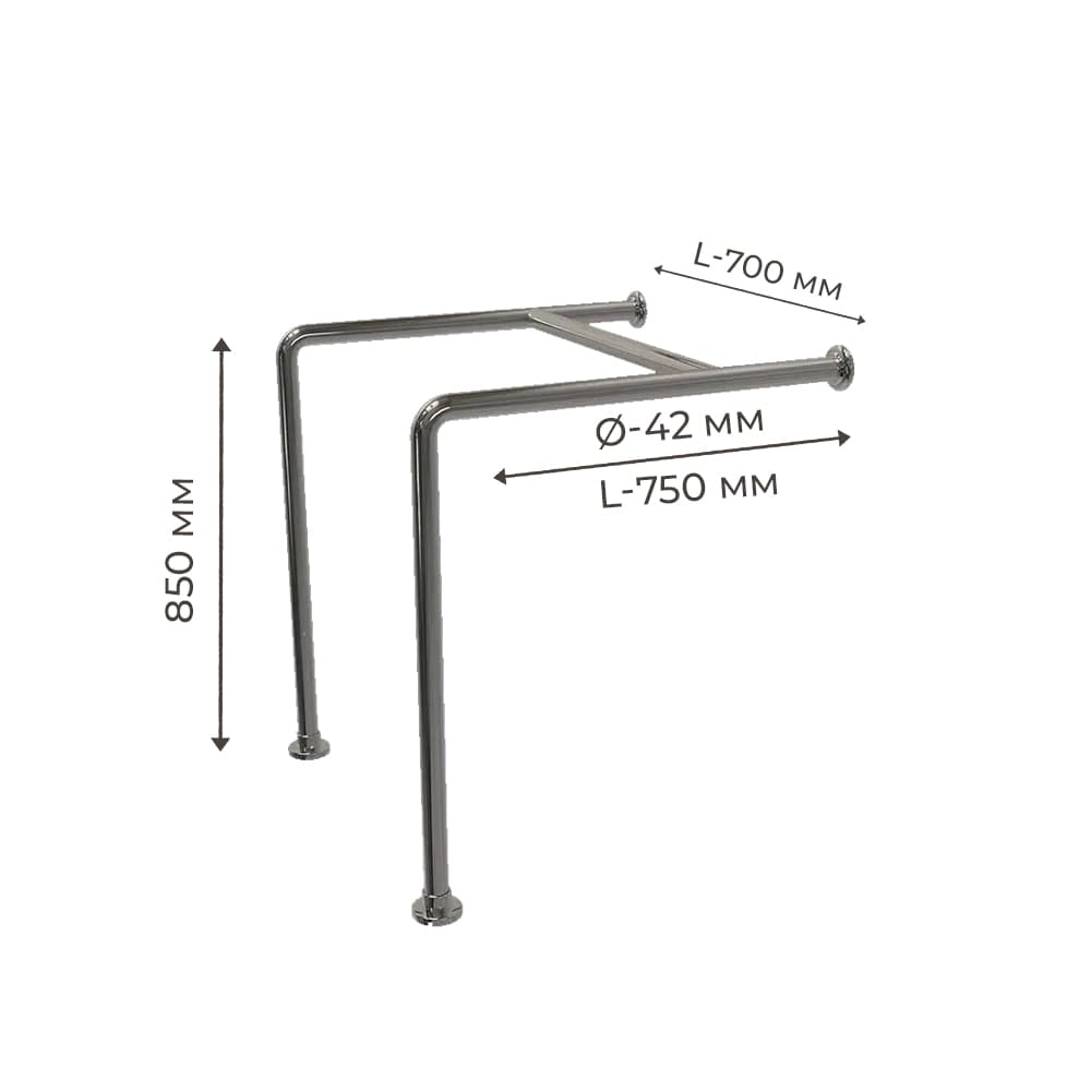 Опис Поручень для людей з інвалідністю (МГН) підлогово-настінний подвійний INVO унітазу, розмір 750х850 мм, D труби - 42 мм