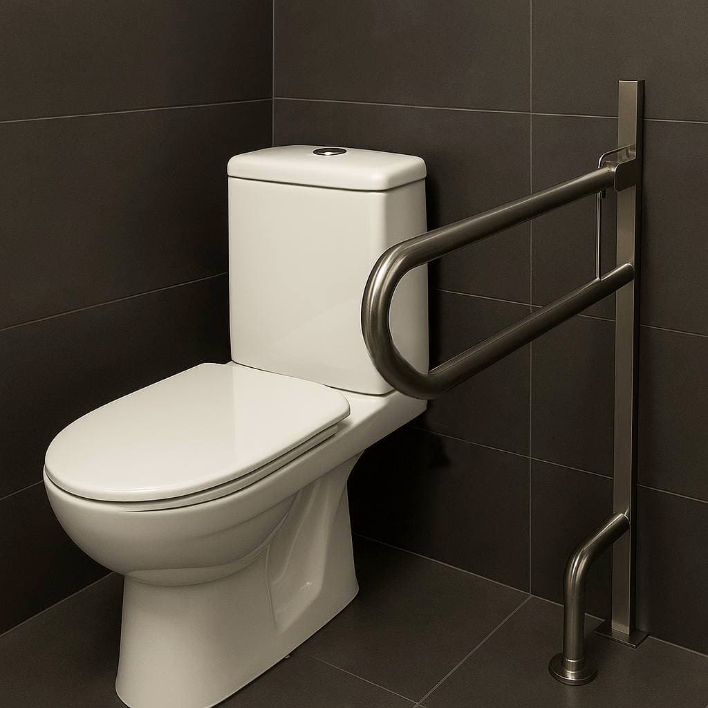 Поручень подвійний відкидний з кріпленням у підлогу на нозі INVO створений для забезпечення додаткової безпеки і комфорту людей з обмеженими можливостями, інвалідів, літніх людей і тих, хто проходить реабілітацію.