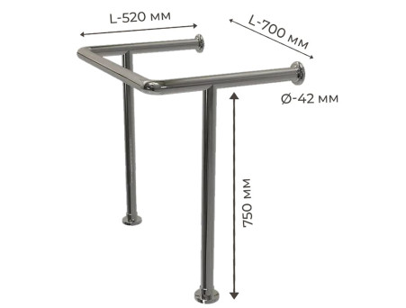 Опис Поручень для людей з інвалідністю (МГН) у туалет для раковини підлогово-настінний INVO дві опори, розмір 700х750 мм, D труби - 42 мм