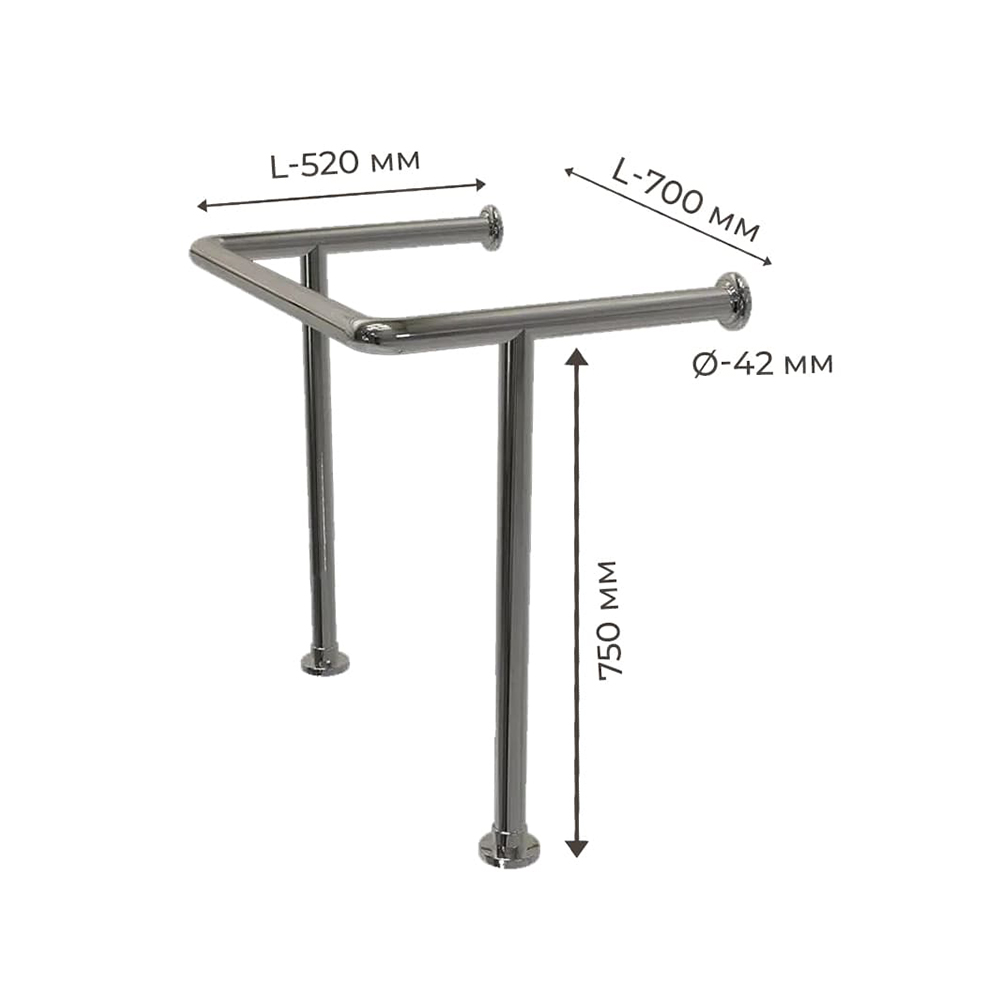 Поручень для людей з інвалідністю (МГН) у туалет для раковини підлогово-настінний INVO дві опори, розмір 700х750 мм, D труби - 42 мм