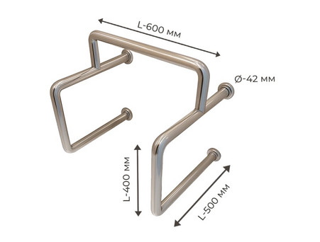 Для замовлення доступні поручні у діаметрах труби: 25 мм, 32 мм, 38 мм, 42 мм та розміром: 500х600х400 мм.