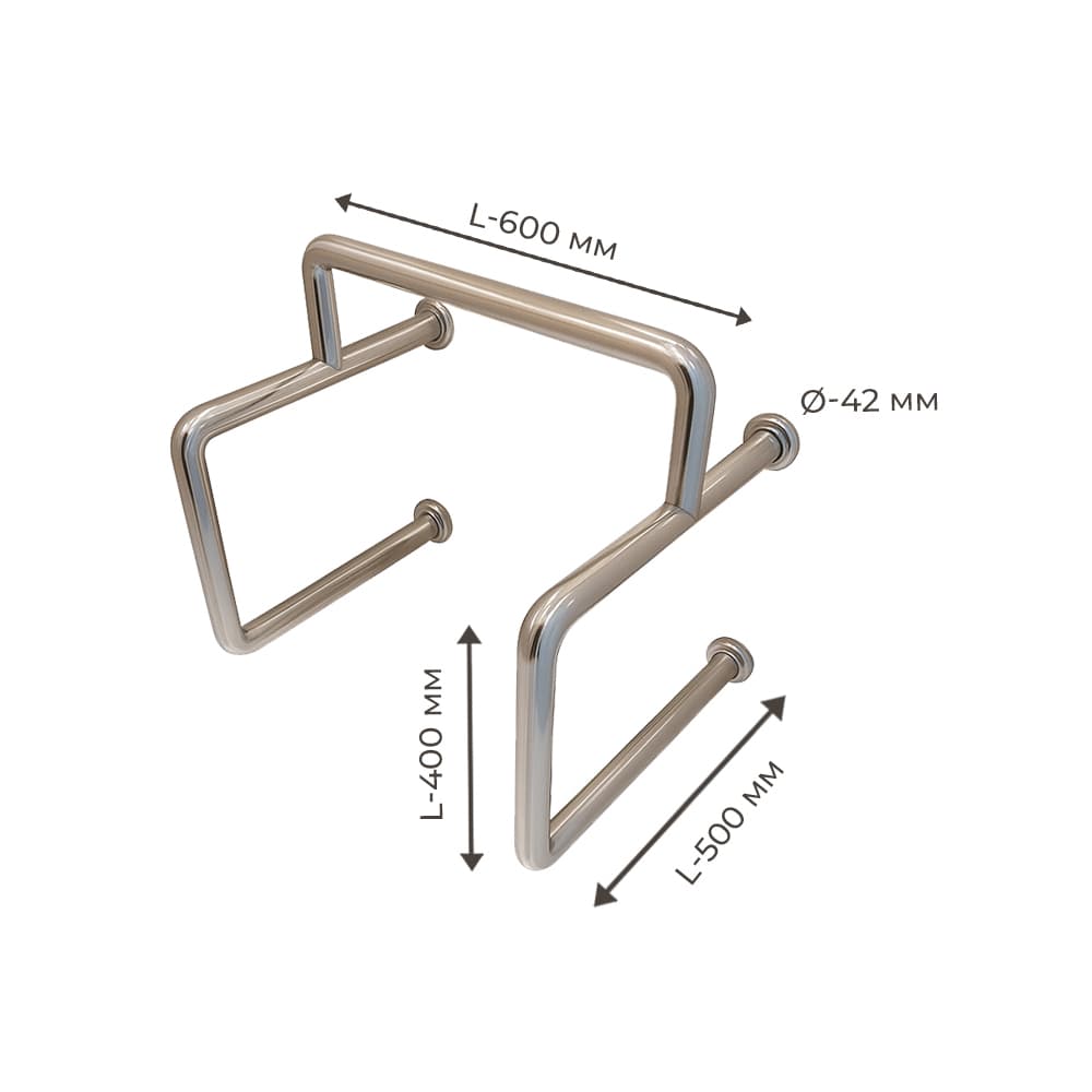 Опис Поручень опорний для людей з інвалідністю (МГН) настінний INVO для пісуара із нержавіючої сталі, розмір 500х600х400 мм, D труби - 42 мм