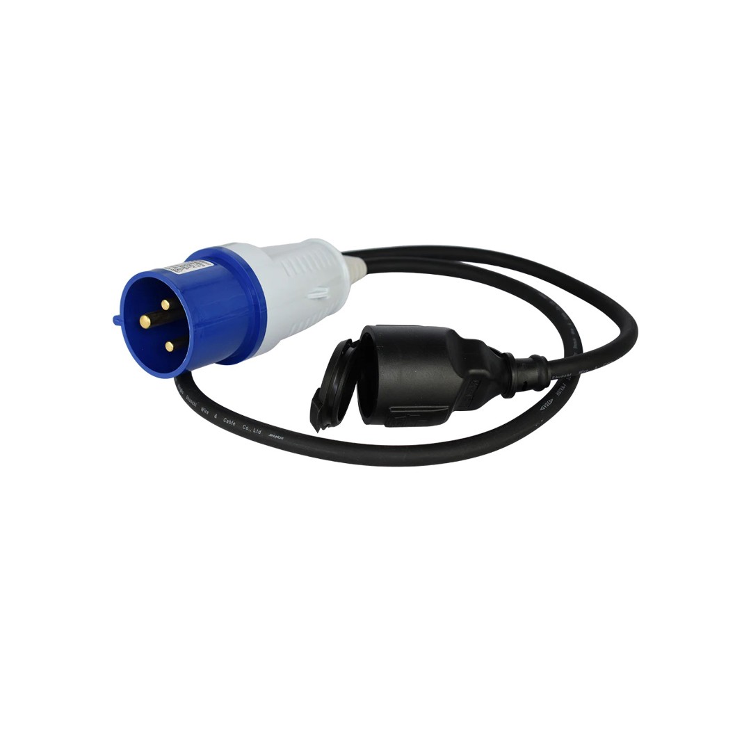 Адаптер 32а -> 16а С одной стороны адаптер имеет вилку 32А, с другой – розетку 16А, что позволяет подключить прибор с обычной вилкой 16А к источнику энергии с розеткой в 32А. Имеет общую мощность до 3,6 кВт. ПОЛНАЯ ЗАЩИТА Кабель удлинителя имеет изоляцию из синтетического каучука и оболочку из неопренового каучука, устойчив к гибке и торсионному вращению, сохраняет эластичность при температурах от -40 до +90 °С. Полностью защищен от воздействия влаги, воздействий ультрафиолетового излучения, озона, химических веществ, механических нагрузок (ударов, падения, наезд), что позволяет использовать его в любое время года в помещении и под открытым небом. Розетка снабжена защитной крышкой. Высококачественный кабель Удлинитель оснащен кабелем со 100% медными жилами 3х1.5 мм2, имеет жилое заземление желто-зеленого цвета. Только медь способна выдерживать длительные предельные нагрузки, что делает износостойкий кабель и продлевает срок его эксплуатации. Кабель сертифицирован TÜV Rheinland в соответствии с EN 50525-2-21, RoHS Compliant.Характеристики - Адаптер KS EX1M-1S