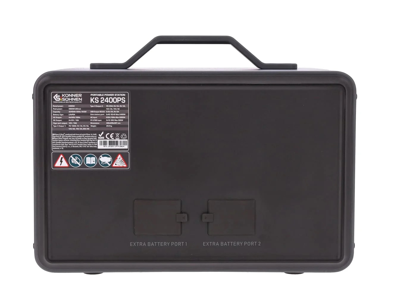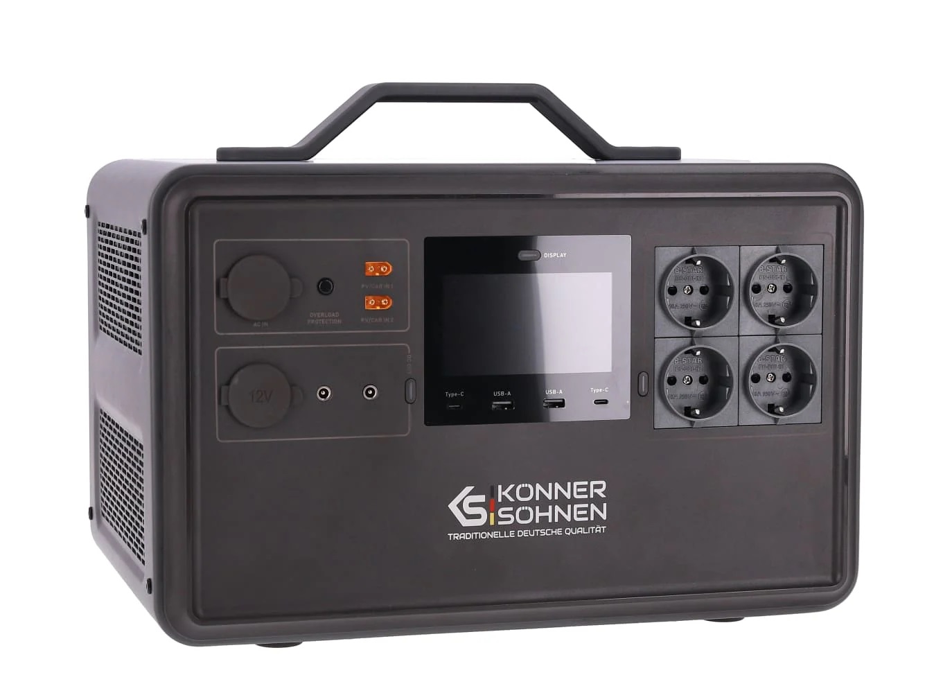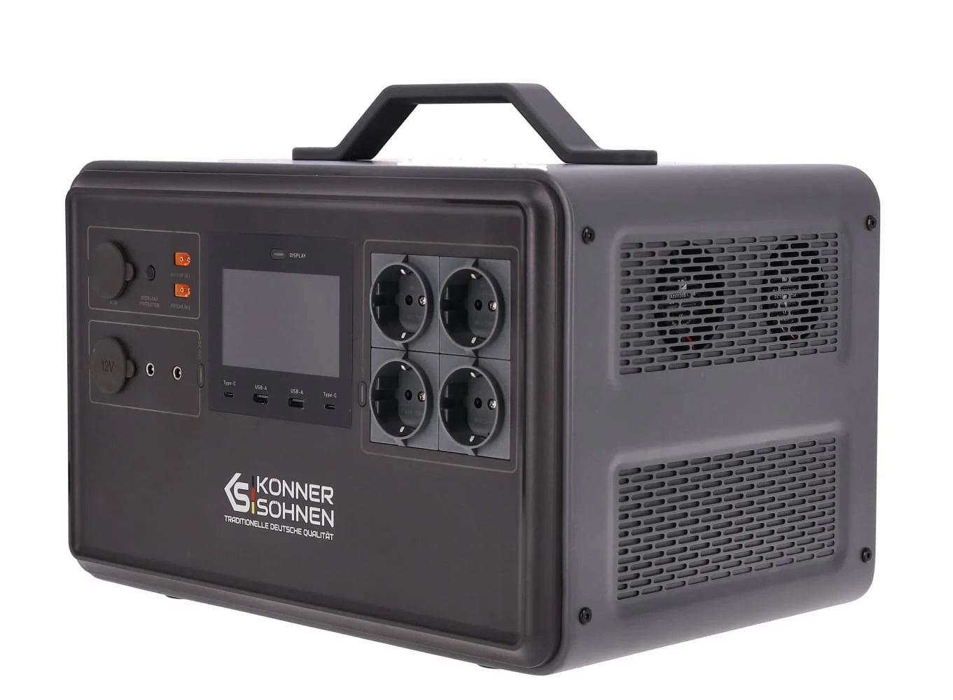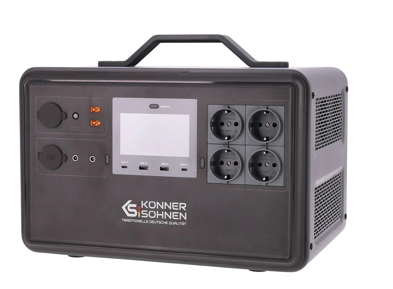 Мобильная портативная электростанция KS 2400PS немецкой торговой марки Könner & Söhnen производится с использованием высококачественных LifePO4 литий-железо-фосфатных аккумуляторов высокой емкости, имеющих более высокую энергетическую плотность по сравнению с Li-ion, они могут сохранять больше энергии в компактном формате и имеют большой жизненный цикл – 4000 циклов заряд-разряд. Она станет надежным помощником для зарядки устройств в пути или сбоев электроснабжения. Ее мощности будет достаточно для работы такой техники как смартфон, цифровая камера, планшет, дрон, мини-холодильник, накачивающий насос, вентилятор. Она работает тихо, поэтому позволит питать электрические устройства и наслаждаться временем без мешающего шума.