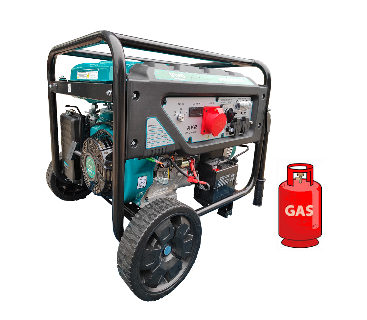Описание Генератор ГАЗ/бензиновый INVO H9000DТ-G 7.2/7.7 кВт, трехфазный, с электрозапуском