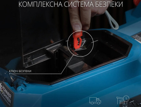 Аккумулятор газонокосилки оснащен комплексной системой безопасности, включая ключ активации, который необходимо вставить для включения инструмента. Если ключ вынуть, газонокосилка автоматически выключается, что защищает от случайного включения и гарантирует безопасность при хранении и транспортировке. - НАДЕЖНЫЙ БЕСЩЕТКОВЫЙ ДВИГАТЕЛЬ