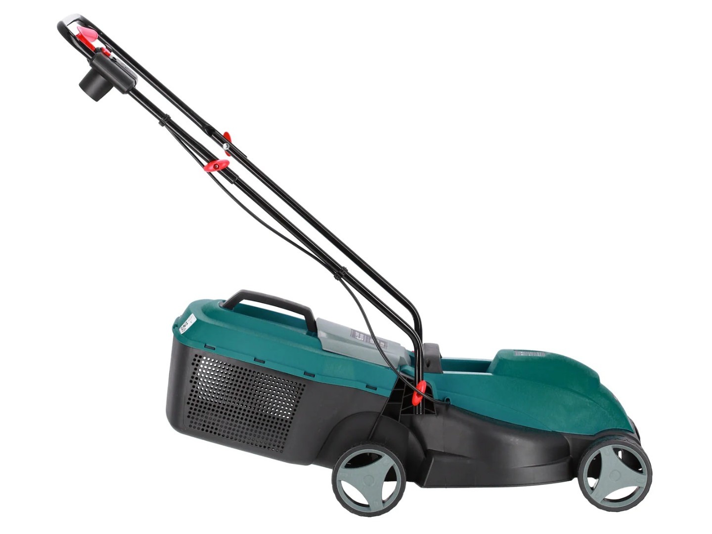 Регулировка высоты скашивания Удобный рычаг регулировки уровня скоса имеет 3 позиции, диапазон высоты среза от 25 мм до 65 мм, что позволяет настраивать газонокосилку под индивидуальные потребности пользователя и позволяет достигать оптимальной высоты газона. Удобство управления и хранения Газонокосилки имеют продуманную эргономику и высокое качество каждой детали, возможность управления одной рукой, крепеж для удобной фиксации кабеля. Складная ручка обеспечивает компактное хранение. Сборник без инструментов Электрические газонокосилки Könner & Söhnen® имеют простую конструкцию, благодаря чему подготовка к работе, обслуживанию или хранению осуществляется быстро, легко и без применения дополнительного инструмента. Контейнер для травы Контейнер косилки KS 32LM изготовлен из легкого и прочного пластика, не подверженного деформации. Он не трескается и не выгорает на солнце, его удобно опустошать и мыть водой.Характеристики - Газонокосилка электрическая KS 32LM