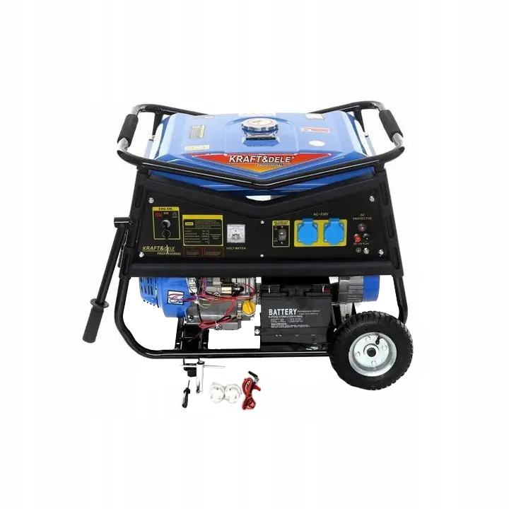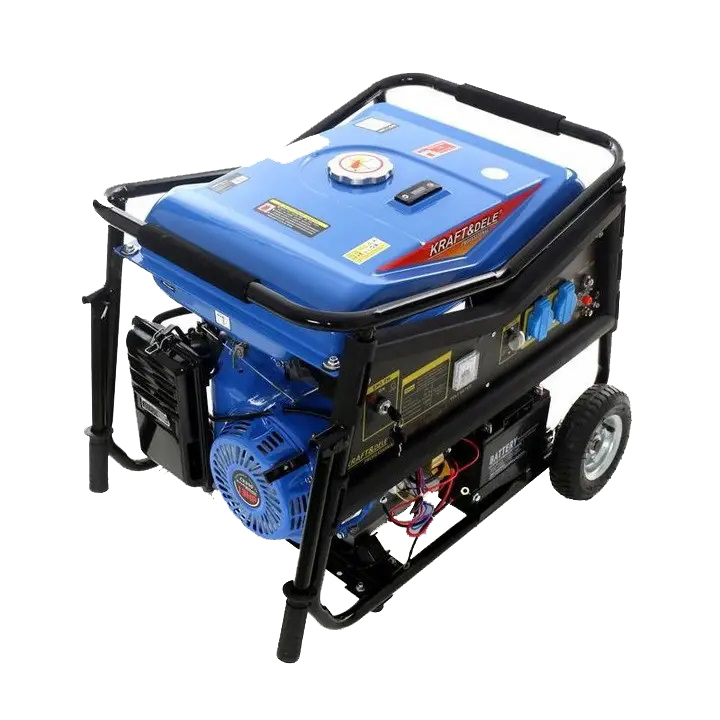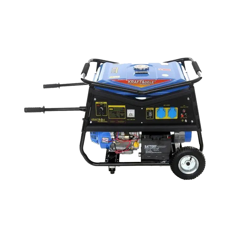 Портативный однофазный генератор от Kraft&Dele предназначен для генерации переменного тока 220-230 В с помощью 4-тактного двигателя внутреннего сгорания OHV мощностью 7HP и максимальной мощностью генератора 5000W.