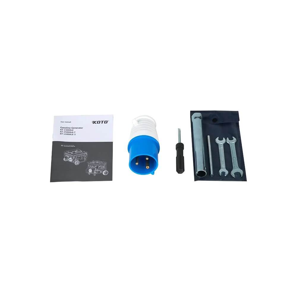 Бензиновый генератор KOTO KT 13000LE-3 – современная электростанция, производящая энергию для бытовых или профессиональных нужд на предприятиях. Номинальная мощность составляет 10,5 кВт, максимальная – 11,5 кВт. Предназначен для подключения одно- и трехфазных приборов, подсоединяемых через две розетки на корпусе – в 16А/230В и усиленная 32А/400В. Управление просто, на цифровом дисплее отображаются все показатели работы и данные вольтметра. Топливный бак изготовлен из прочной стали и имеет объем 55 литров, что позволит работать до 10,5 часов без дозаправки.