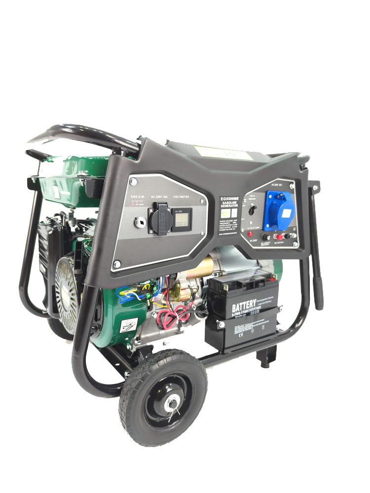 Генератор бензиновый Iron Angel EG 5500 ME 5.2/5.5 кВт с электрозапуском – профессиональная модель бензинового генератора, основная задача которого снабжена качественным и бесперебойным электропитанием различных бытовых приборов, жилых и промышленных объектов. Он станет хорошим помощником в местах, где электричество еще не подведено или временно отсутствует. Это могут быть учреждения образовательного характера, медицинские центры, школы, офисы и т.д.