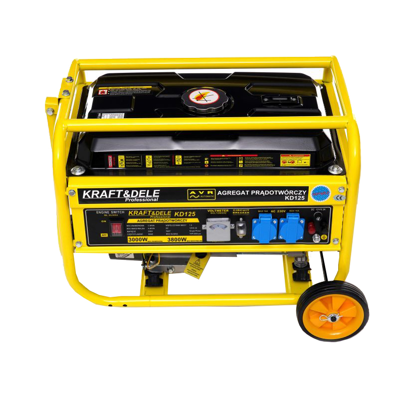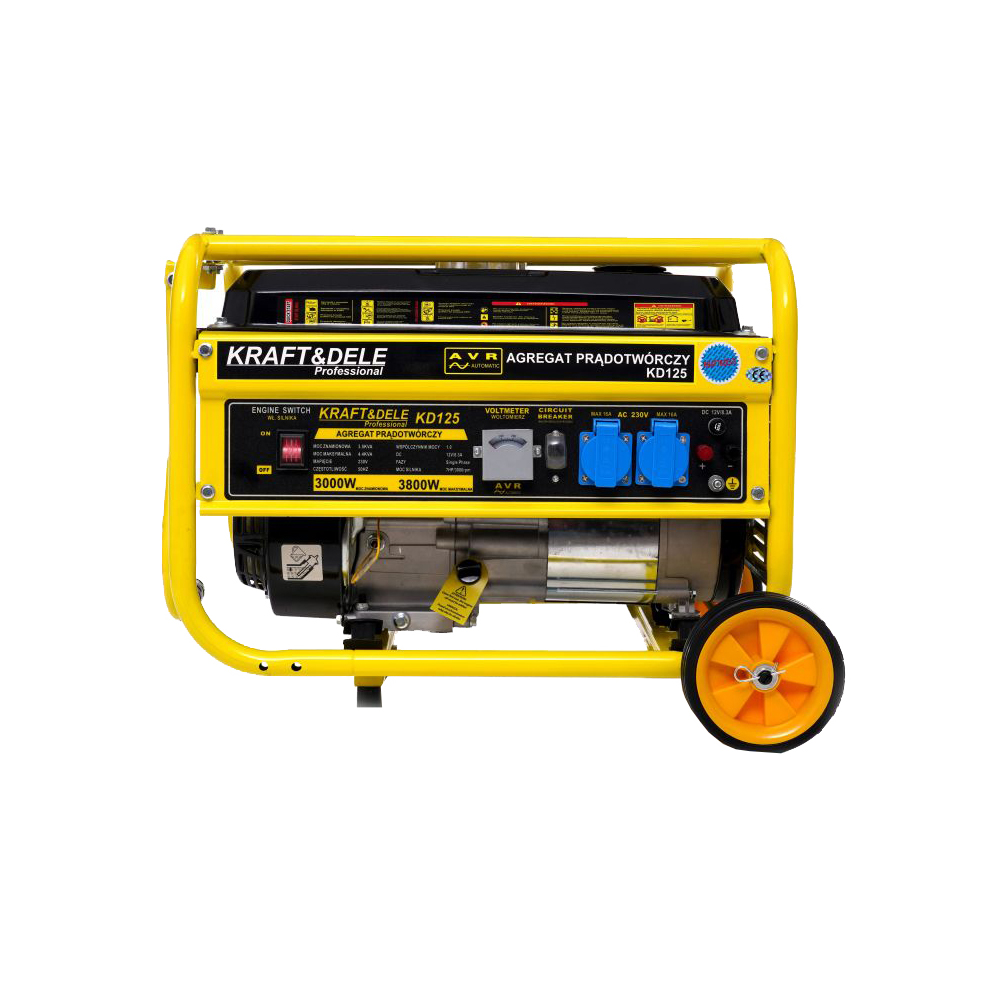 Kraft&Dele KD125 - бензогенератор однофазный с 4-тактным двигателем. Предназначен для автономного энергообеспечения, выработки электроэнергии для питания приборов освещения, бытовой техники и электроники, электрических приборов и инструментов для зарядки автомобильных аккумуляторов. Имеет ручной старт. На выходе кроме обычного сетевого напряжения переменного тока 220 В бензогенератор выдает напряжение постоянного тока 12 В.