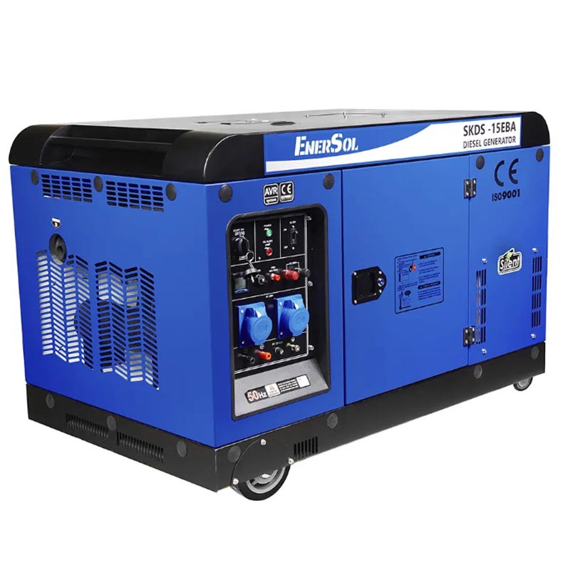 Генератор дизельный EnerSol SKDS-15EBA 12.0/13.0 кВт с электрозапуском – трехфазная электростанция для обеспечения электроэнергией бытовых приборов, строительного оборудования и т.п. суммарной мощностью до 12,0 кВт (номинальная мощность). Максимальная мощность этого дизельного генератора – 13,0 кВт.