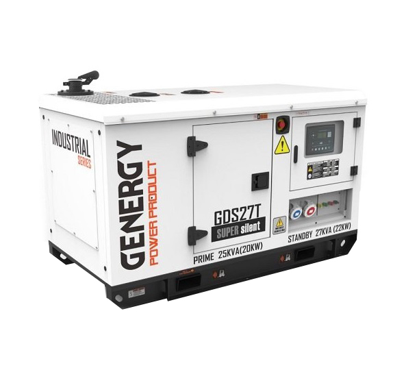 Генератор дизельный GENERGY GDS27T 22 кВт – трехфазная 400 В электростанция для подключения мощных бытовых приборов, строительного оборудования. Подходит для использования в качестве основного и резервного источника питания (имеется возможность установки автоматического ввода резерва).