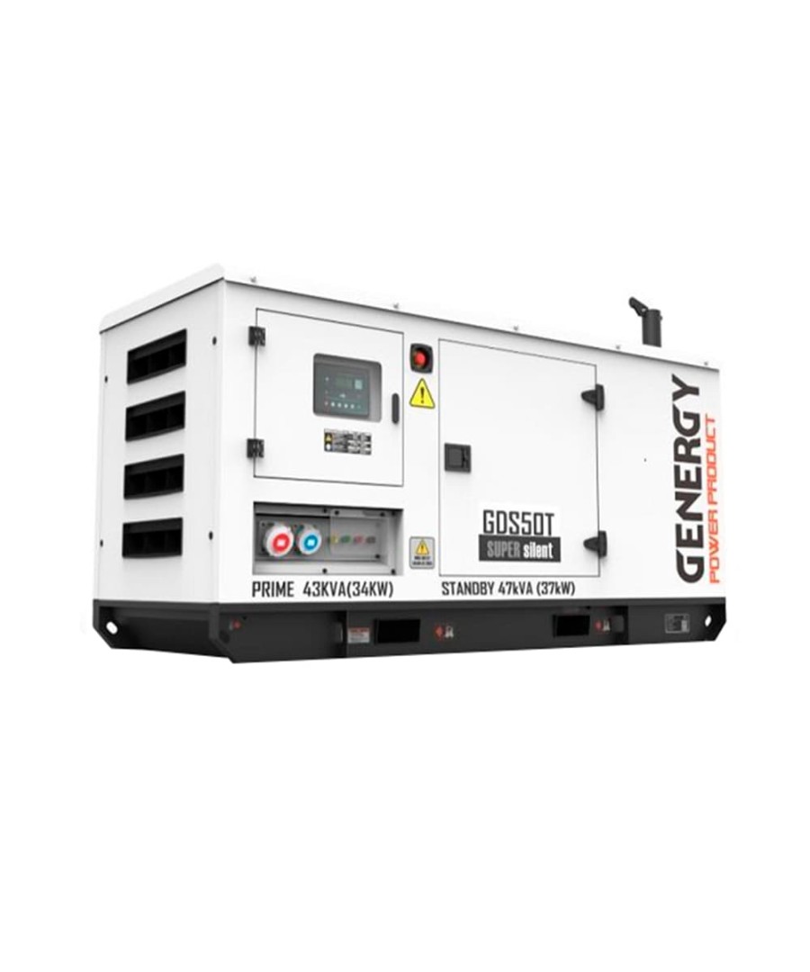 Генератор дизельный GENERGY GDS50T 37 кВт – трехфазная 400 В электростанция для подключения мощных электроприборов, строительного оборудования. Подходит для использования в качестве основного и резервного источника питания (имеется возможность установки автоматического ввода резерва).