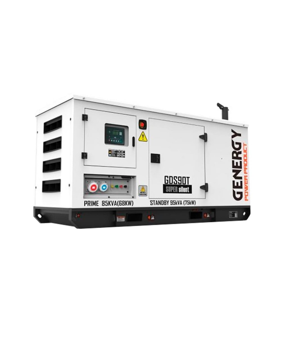 Генератор дизельный GENERGY GDS90T 75 кВт – трехфазная 400 В электростанция для подключения мощных электроприборов, строительного оборудования. Подходит для использования в качестве основного и резервного источника питания (имеется возможность установки автоматического ввода резерва).
