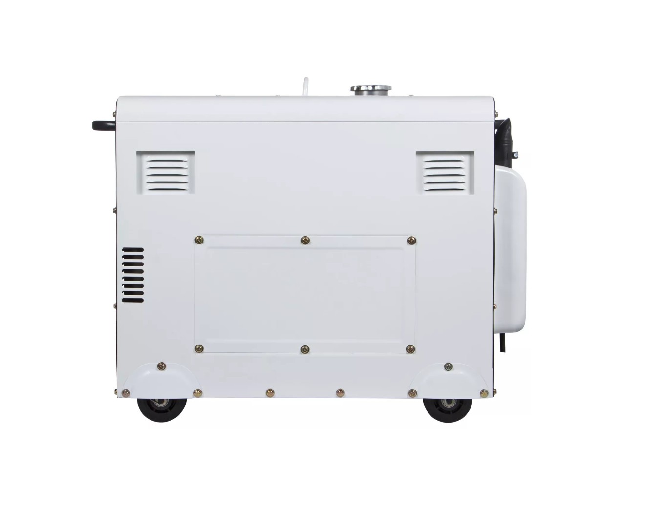 Вместительный, стальной бензобак - резервуар для топлива изготовлен из высокопрочного металла. Он содержит 15 литров горючего, а этого достаточно для 8,5-11 часов генерирования в случае 75% нагрузки.
