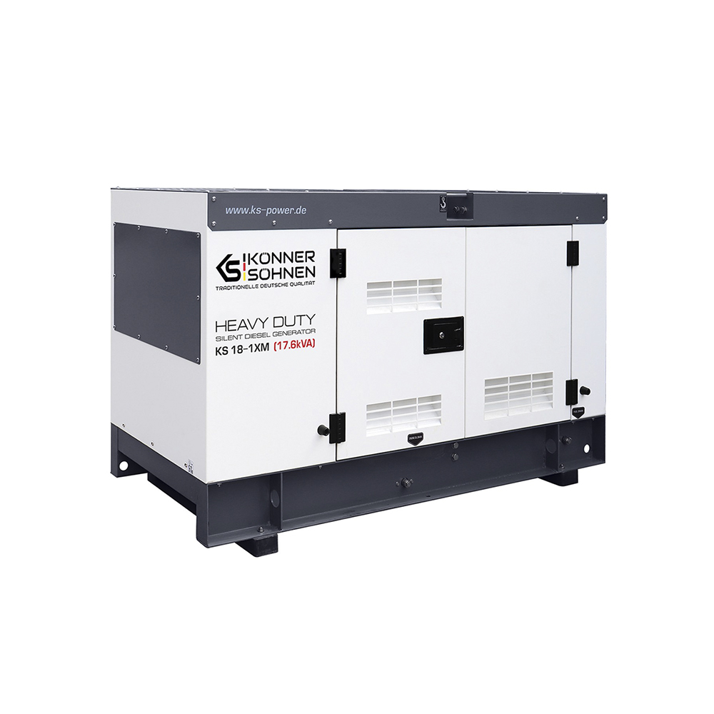 Дизельная однофазная электростанция KS 18-1XMсерии HEAVY DUTY немецкой торговой марки Könner & Söhnen – надежная генераторная установка максимальной мощностью 17.6 кВА.