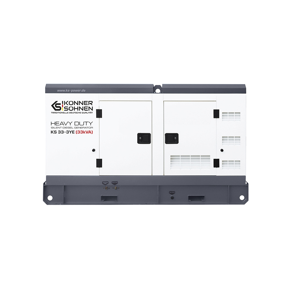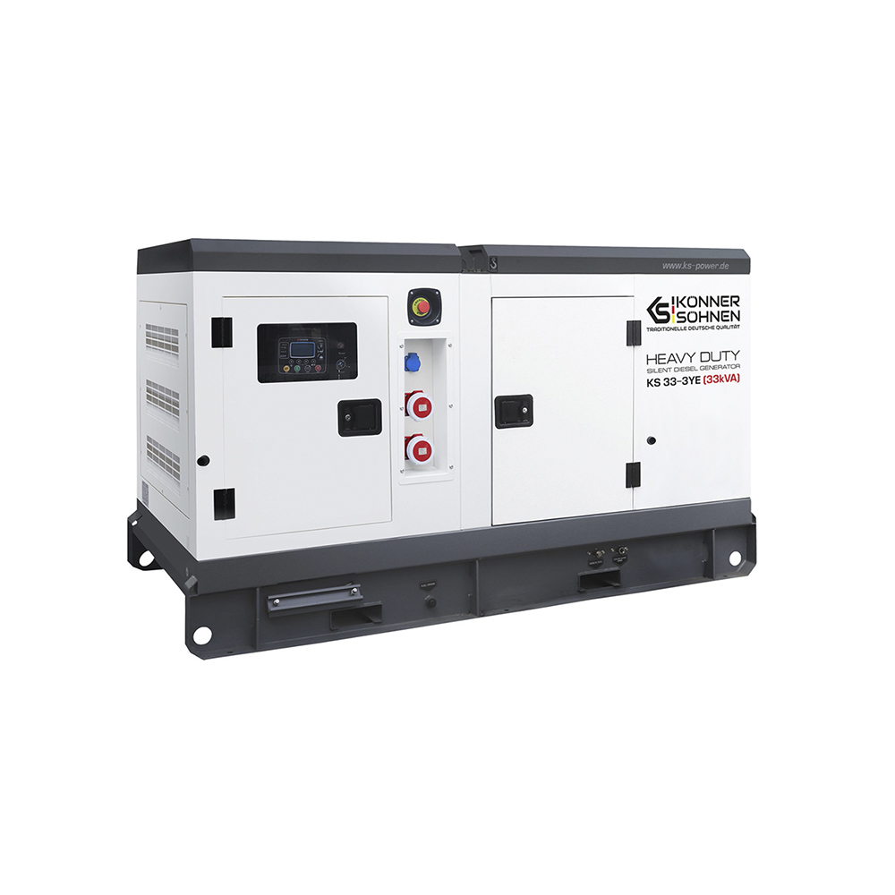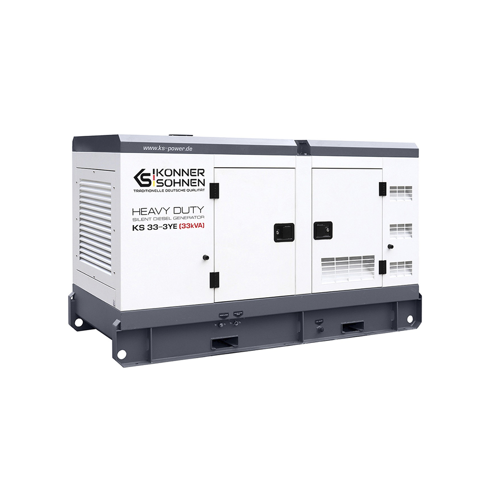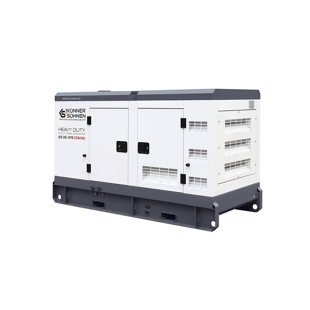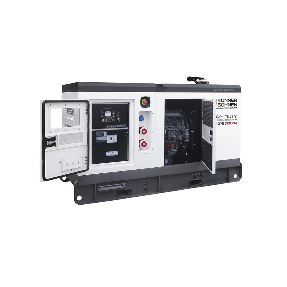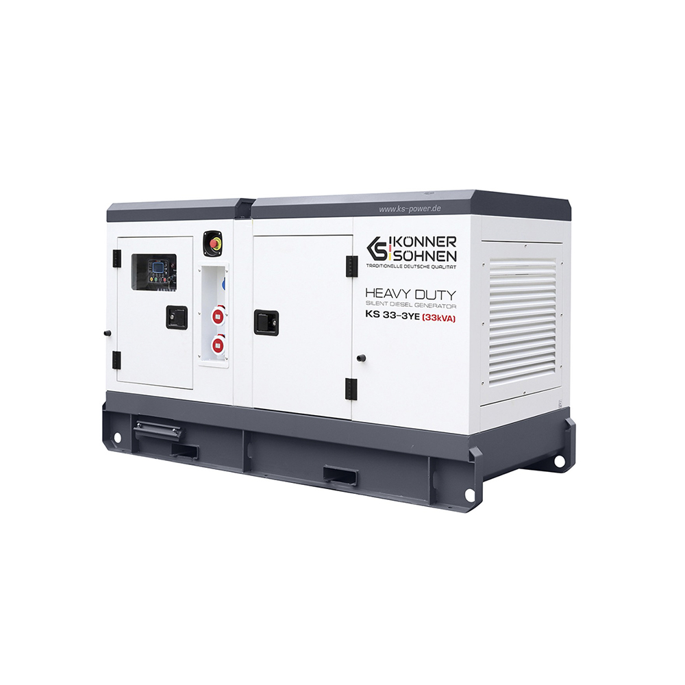 Дизельная трехфазная электростанция KS 33-3YE серии HEAVY DUTY немецкой торговой марки Könner & Söhnen – это надежная генераторная установка максимальной мощностью 33 кВА. Станция оснащена 4-цилиндровым двигателем с жидкостным охлаждением от производителя мирового уровня YangDong. Компания YangDong Co., Ltd – крупнейший производитель многоцилиндровых дизельных двигателей и поставляет высокотехнологичную продукцию более чем в 100 стран мира, сочетая безупречную надежность и долговечность даже в самых экстремальных условиях эксплуатации. Компания YangDong Co., Ltd активно производит двигатели на рынки Европы и США, где необходимо безусловное соответствие действующим нормам в области надежности, экономичности, экологичности, технической и эксплуатационной безопасности силовых установок, что является лучшим подтверждением высокого качества продукции. Модель дизельного генератора KS 33-3YE оснащена 4-полюсным бесщеточным альтернатором переменного тока с системой автоматической регулировки напряжения, подогревом для зимнего использования, с топливным баком на 7 дозаправки (при средней нагрузке 50% расход топлива составляет 5,1 литра/ч), возможностью подключения системы автоматического запуска/остановки, всепогодным защитным антивандальным корпусом со звукоизоляцией. Söhnen все электростанции имеют запас мощности по отношению к заявленным характеристикам.