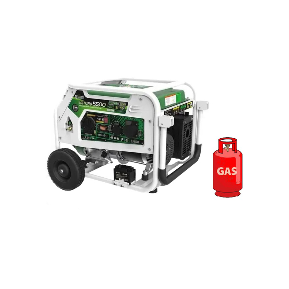 Генератор газ - бензин GENERGY NATURA 5500 5,5/5 кВт – однофазная (230 В) газово-бензиновая электростанция для обеспечения электроэнергией мощных бытовых электроприборов, строительного инструмента и т.п. Модель может использоваться в качестве основного или резервного источника питания. Максимальная мощность генератора – 5,5 кВт (при использовании топлива – бензин) и 5 кВт (при использовании топлива – пропан). Номинальная мощность (максимально допустимая мощность для длительных нагрузок) – 5 кВт (бензин) и 4,5 кВт (пропан).