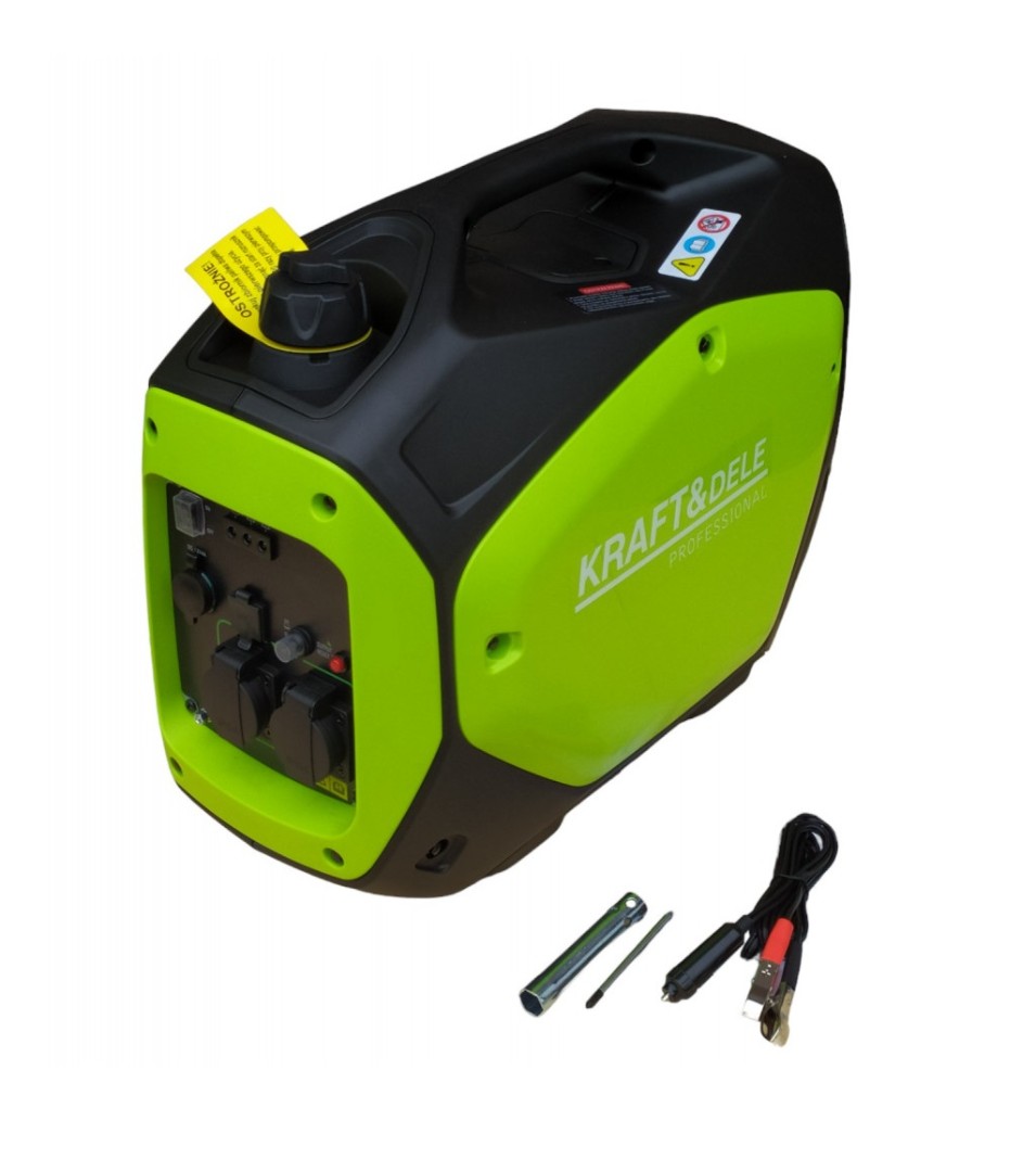 Инверторный бензиновый генератор Kraft Dele KD685 – оснащен надежным, устойчивым к работе в экстремальных условиях 4-тактным двигателем с максимальной мощностью на выходе до 3 кВт. Идеальный вариант, чтобы сделать ваш отдых, поход или рыбалку еще ярче и комфортнее. При работе полного бака топлива объемом 3,6 л хватит до 3,8 ч при 50% нагрузке. Инверторная технология обеспечивает надежное питание для чувствительных электрических устройств и компьютеров. Защита при низком уровне смазки. Удобная защищенная панель. Термический автоматический выключатель защищает генератор от перегрузки или перегрева. Индикатор сигнала тревоги значительно упрощает контроль при использовании.