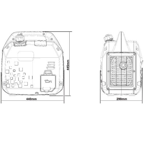 - частоту, моточасы (необходим показатель для проведения своевременного технического обслуживания); розетка 230 16 А IP44; розетка 12 В – 8,3 А для зарядки аккумулятора. - Наличие ЭКО-режима, позволяющего экономно тратить топливо. При включении режима происходит регулировка оборотов в зависимости от нагрузки. Таким образом, обеспечивается экономия бензина до 30%.