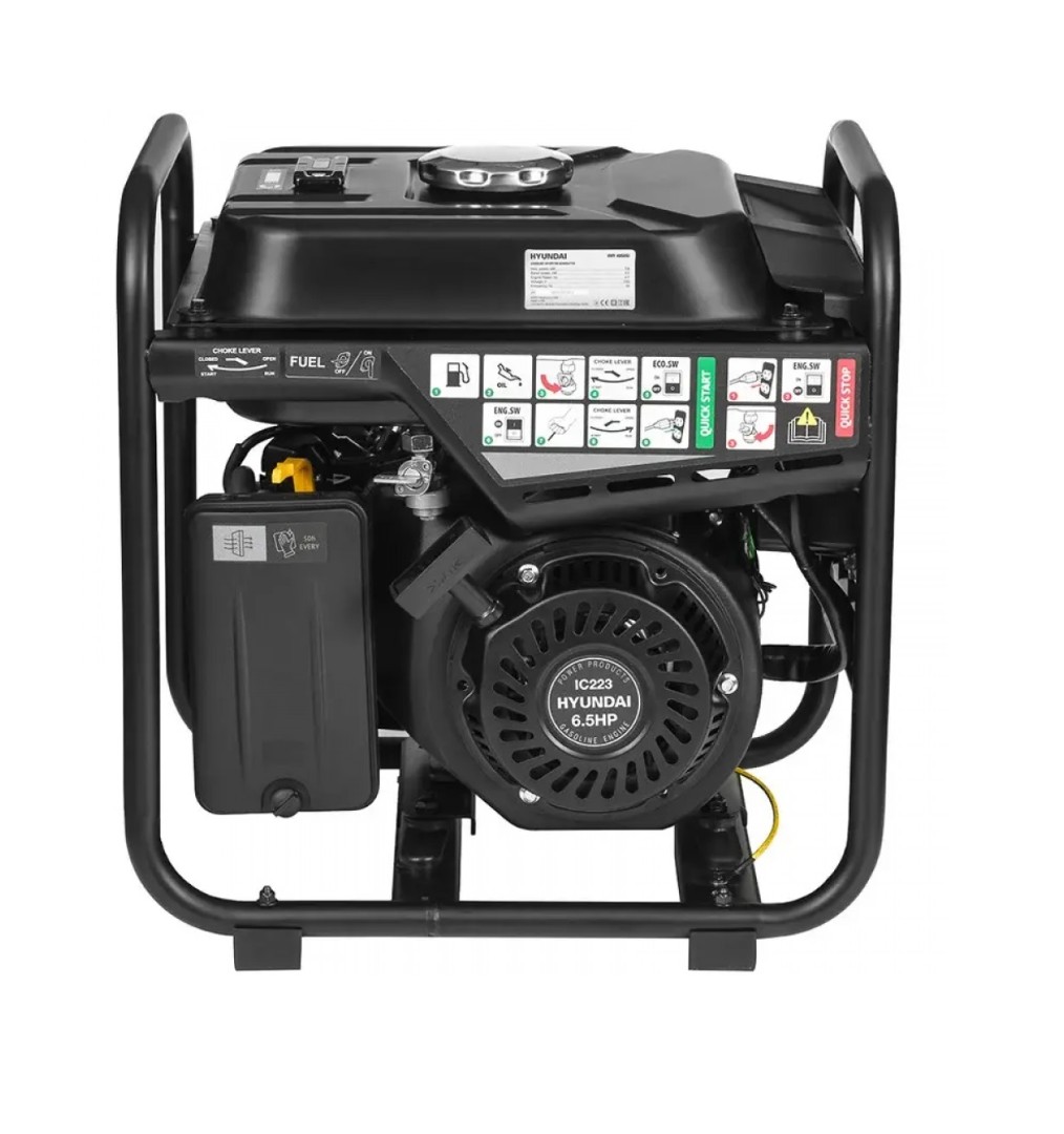 Hyundai HHY 4050Si оборудован бензиновым двигателем, который при напряжении 220В обеспечивает мощность до 3,8 кВт. Топливный бак емкостью 6,5 литров позволяет эффективно использовать топливо, а контроллер оборотов двигателя оптимизирует его расход в соответствии с нагрузкой. Использование 100% меди в альтернативе обеспечивает стабильный ток и эффективную теплоотдачу, что повышает надежность и долговечность генератора.