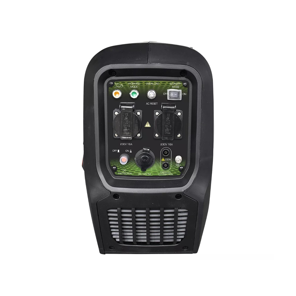 Встроенный электронный блок с микропроцессорным управлением контролирует работу генератора и обеспечивает стабильное выходное напряжение 230В 50Гц синусоидальной формы, что подходит для надежной работы чувствительной электроники.