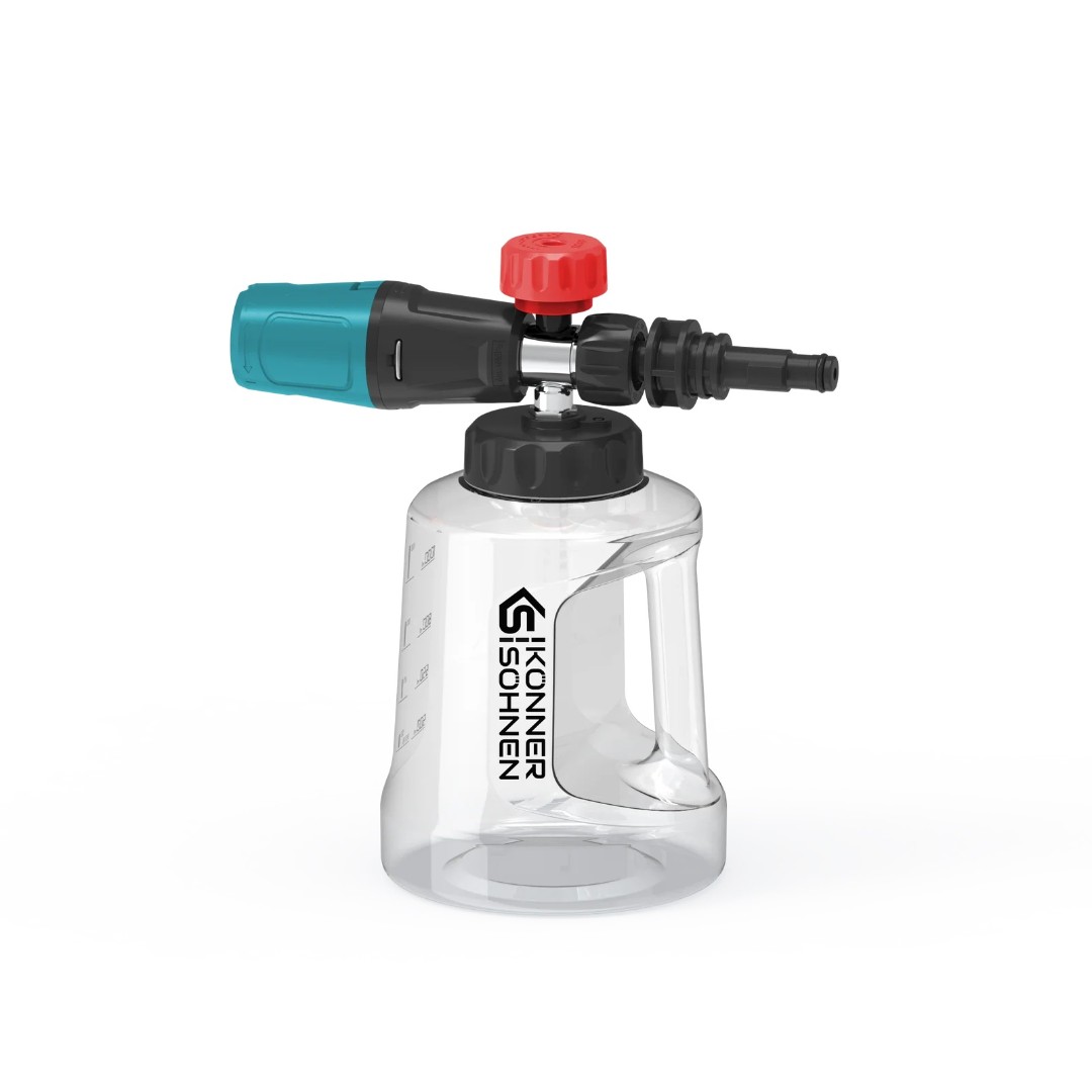 Точная дозировка моющего средства. Регулировочный клапан обеспечивает плавную регулировку потока моющего средства, а легкий щелкающий звук во время вращения обеспечивает комфортную тактильную обратную связь. Защита от протечки. Крышка со встроенным обратным клапаном предотвращает протекание моющего средства, даже если контейнер опрокинут. Удобная шкала измерения. Четкая шкала на корпусе контейнера помогает быстро и точно смешивать моющее средство в нужных пропорциях. Удобная ручка. Эргономичная ручка обеспечивает надежный и комфортный хват при использовании. Максимальное использование жидкости. Гибкая трубка с утяжеленным шариком позволяет использовать моющее средство до последней капли, даже когда уровень жидкости низкий.Характеристики - Генератор пены для мойки высокого давления KS FJC1L