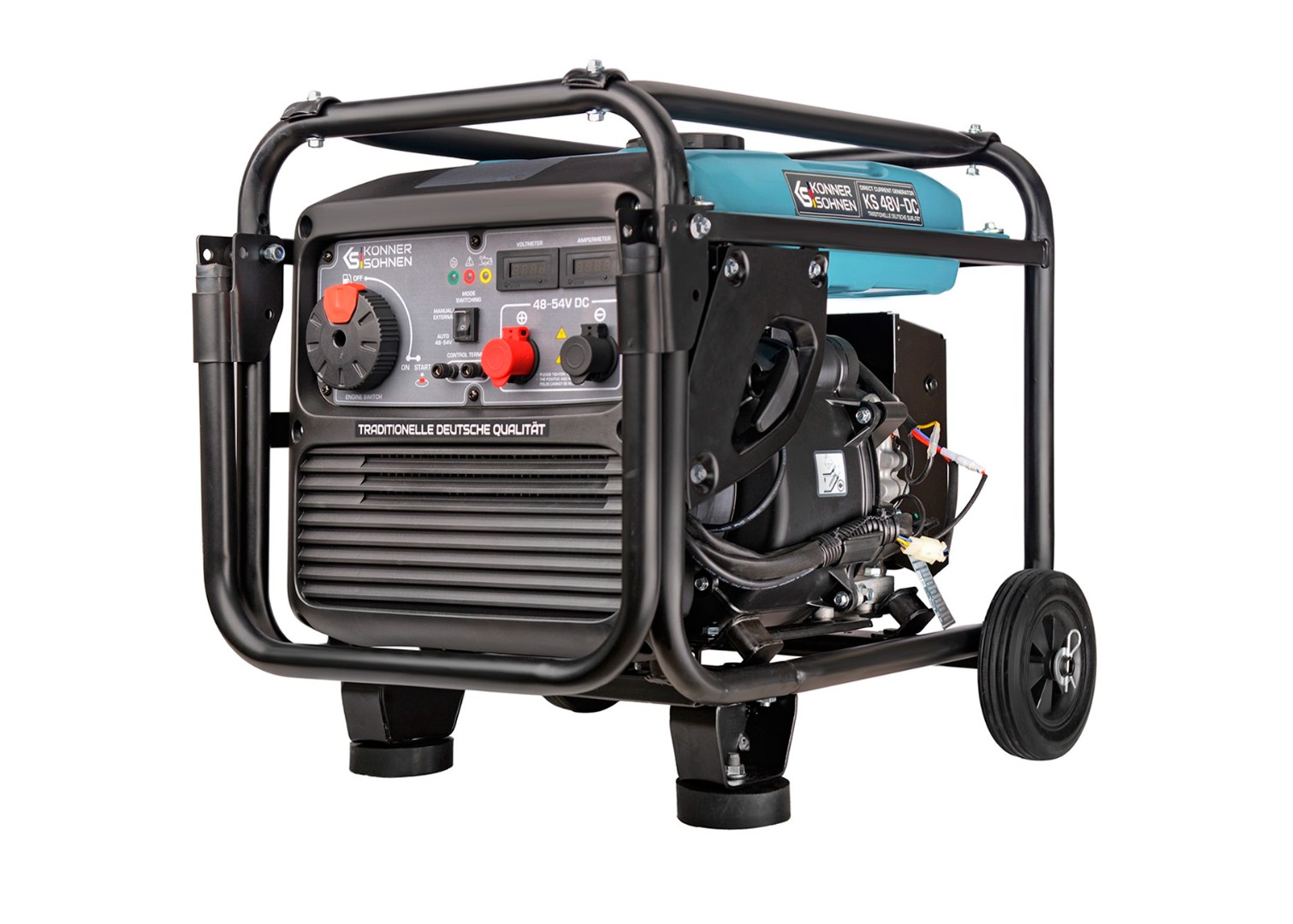Генератор постоянного тока KS 48V-DC оснащен колесами транспортировки и ручкой для удобства перемещения, благодаря чему варианты использования этой модели значительно расширяются. Вы можете заряжать аккумулятор в местах, где нет центрального электроснабжения.