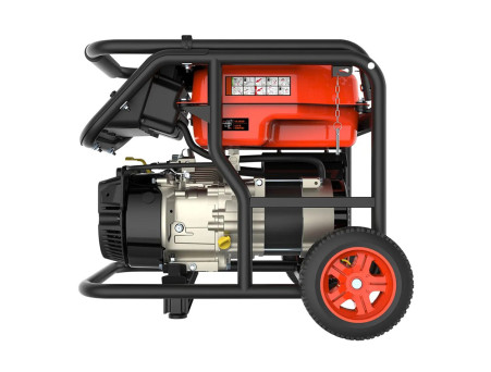 3. Удобство использования: Генератор оборудован двумя 8-дюймовыми колесами и складной металлической ручкой с пластиковой накладкой, позволяющей легко перемещать устройство на большое расстояние.