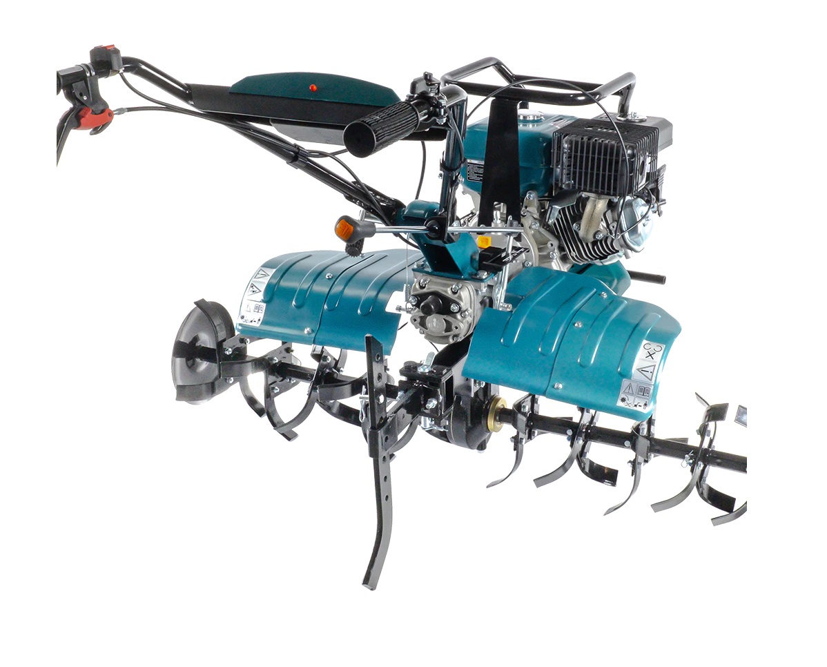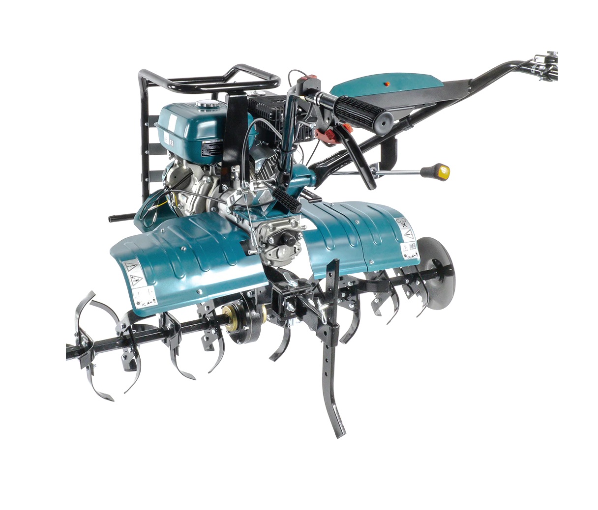 Двигатель культиватора приводится в действие ручной системой запуска. Просто потяните ручку стартера и двигатель начинает работать.