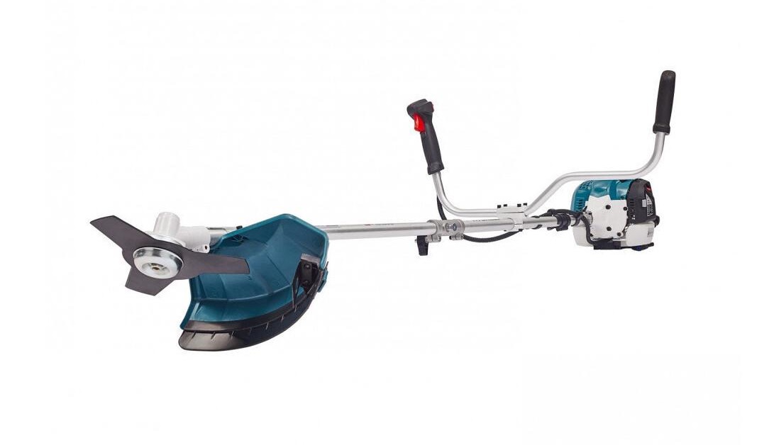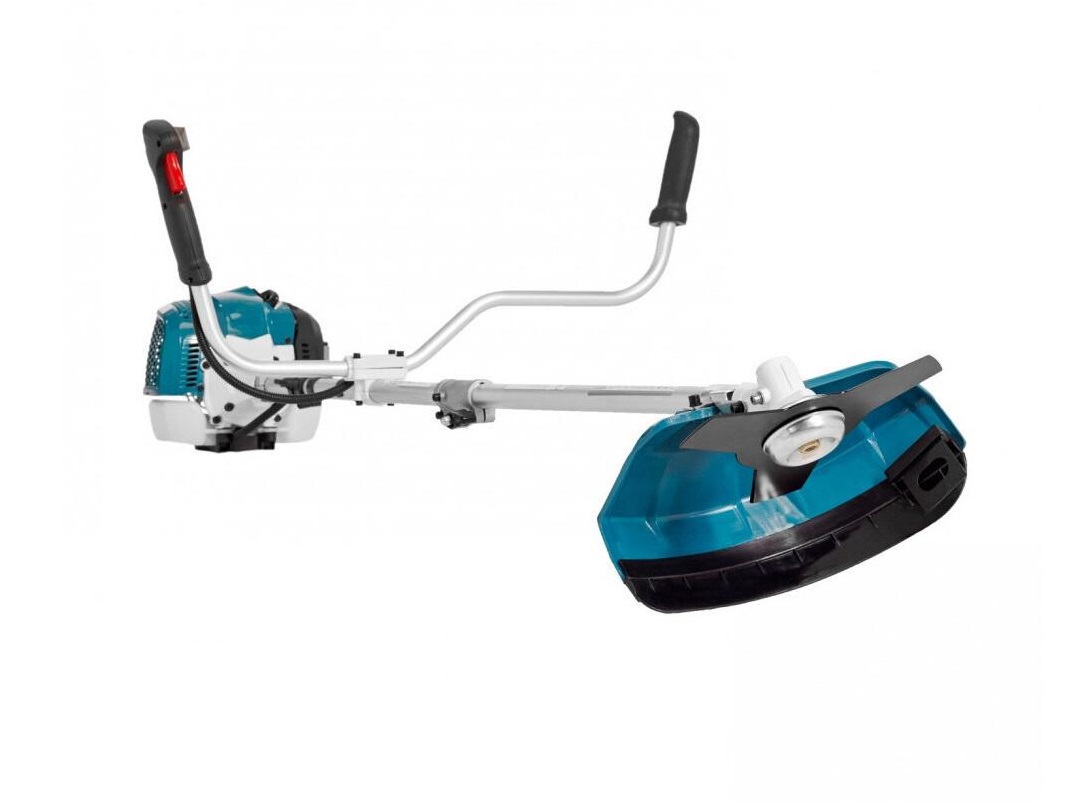 Инструмент предназначен для решения непростых задач, поэтому в комплекте есть стальной нож. Острые лопасти ножа позволяют срезать достаточно большие по диаметру ветви, плотные стебли сорняков. Нож справляется с высокой и низкой растительностью. Увеличенная ширина кошения составляет 255 мм. Нож не требует частой заточки, способен выдерживать столкновение с твердыми предметами.