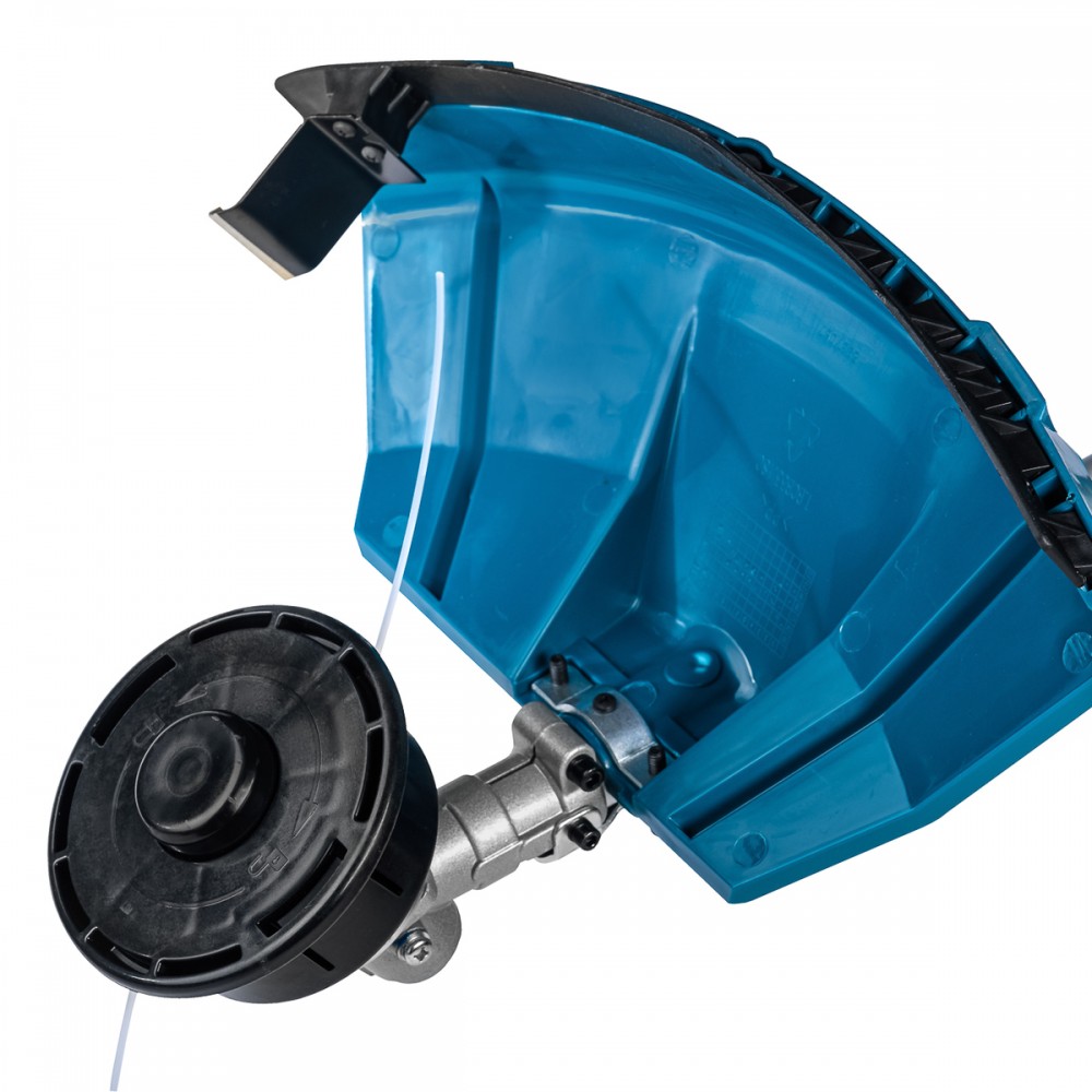 В качестве режущего элемента можно использовать леску или нож. Коса оснащена надежным двигателем, системой легкого запуска Easy start, системой гашения вибрации, велосипедной рукояткой, редуктором с пониженным уровнем шума. Разборный вал позволяет компактно сложить инструмент для его хранения. Защитный кожух обеспечит безопасность оператора при работе. Наличие наплечного ремня способствует распределению нагрузки между руками и спиной пользователя.