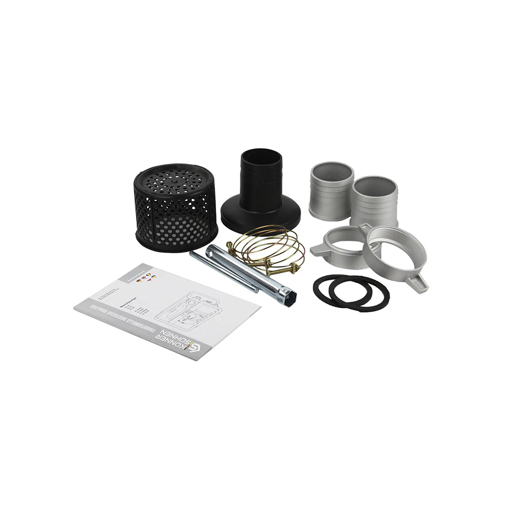 Мотопомпы укомплектованы дополнительными аксессуарами: фильтр для воды, комплект фитингов, свечной ключ, набор для подключения шланга.