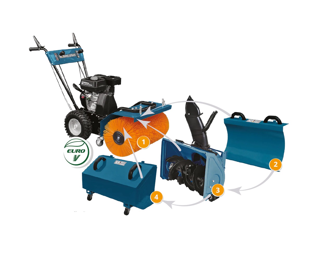 Эффективная мультифункциональная машина KS 7HP-MFM 60 SET 4 in 1 для выполнения широкого спектра сельскохозяйственных работ в течение всего года. Главной особенностью данной машины является самоходность и активное навесное оборудование, благодаря чему машина не нуждается в дополнительных усилиях со стороны пользователя и практически практически справится с такими работами как уборка снега, пыли, грязи, опавших листьев или другого мусора, планировка грунта и многое другое. Навесное оборудование из разных насадок, таких как: