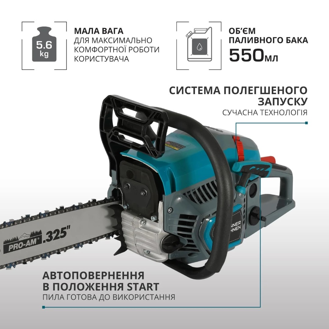 - Система облегченного запуска: Благодаря системе облегченного запуска пользоваться пилой удобно даже при низких температурах. Стартер оснащен дополнительной пружиной, упрощающей запуск двигателя, а ручной праймер позволяет быстро подать топливную смесь в карбюратор.