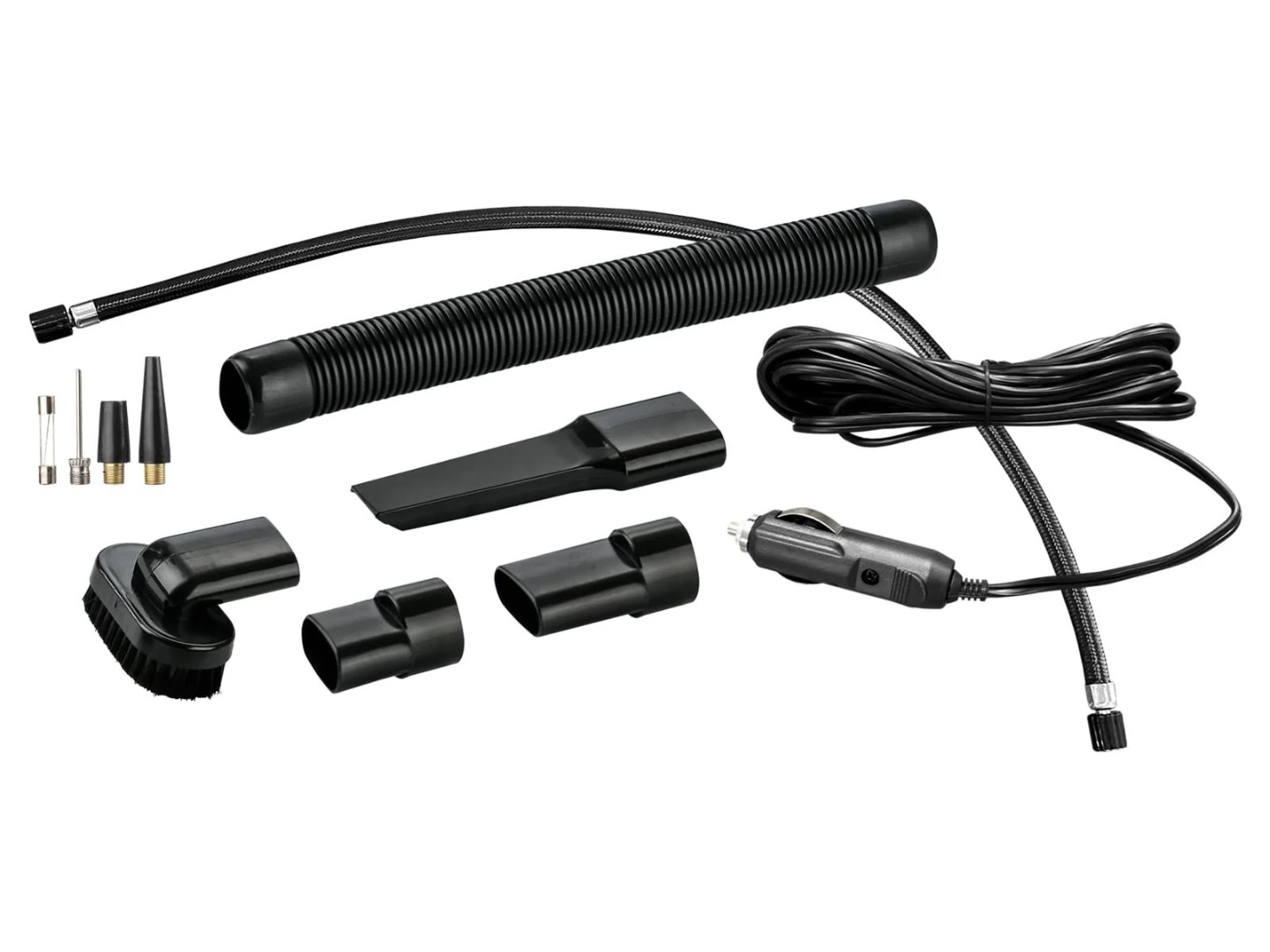 В комплекте есть несколько щеток для уборки. Щелевая насадка - всасывает крошки и пыль в труднодоступных углах, щелях и пазах в автомобиле, а также на неровных поверхностях. Насадка-щетка предназначена для тщательной очистки текстильных поверхностей, сидений, подлокотников, ковриков. Гофрированный шланг, адаптеры, переходники для воздушного шланга – дополнительные помощники в работе устройства.
