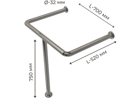 Описание Поручень для людей с инвалидностью (МГН) для раковины напольно-настенный INVO из нержавеющей стали, размер 700х750 мм, D трубы – 32 мм