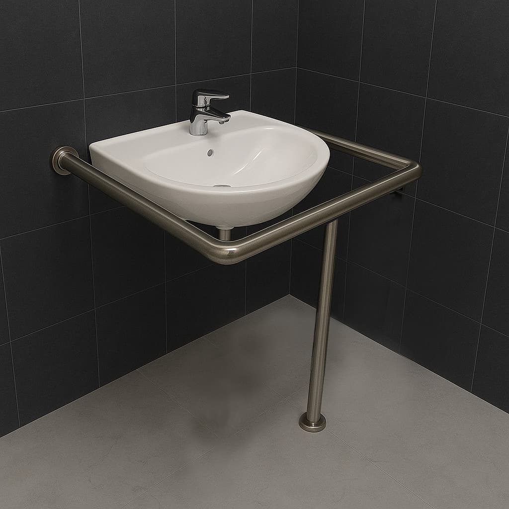 Поручений для раковины напольно-настенный INVO создан для обеспечения дополнительной безопасности и комфорта людей с ограниченными возможностями, инвалидов, престарелых и проходящих реабилитацию.