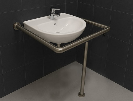 Поручений для раковины напольно-настенный INVO создан для обеспечения дополнительной безопасности и комфорта людей с ограниченными возможностями, инвалидов, престарелых и проходящих реабилитацию.