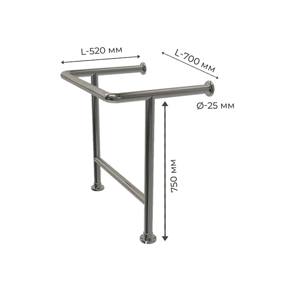 Поручень для людей с инвалидностью (МГН) для раковины напольно-настенный INVO с защитой слива, размер 700х750 мм, D трубы – 25 мм